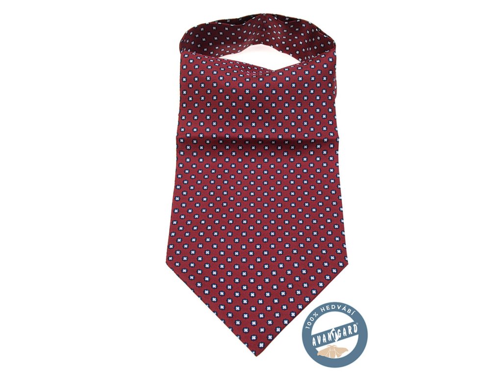 Bordó hedvábný askot se vzorem je výrobek české značky Avantgard.
