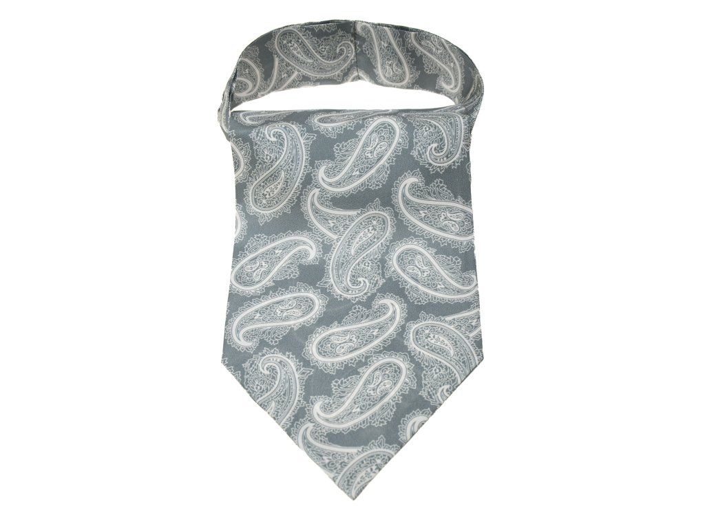 Šedý hedvábný askot se vzorem Paisley
