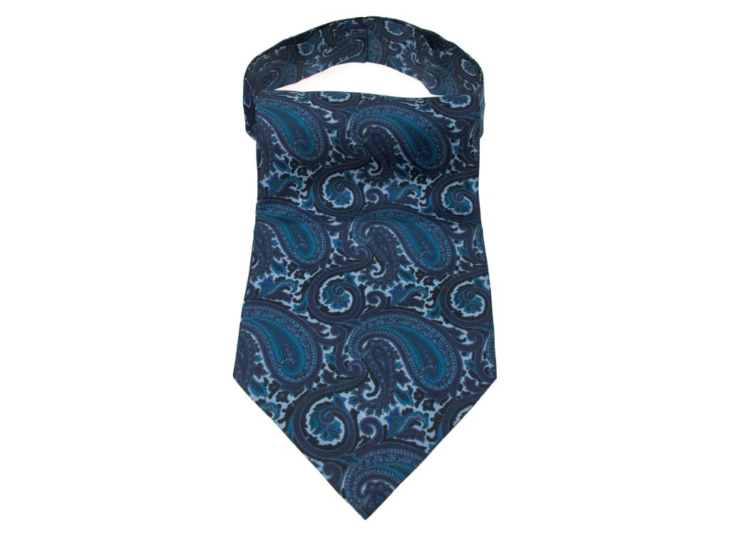 Sytě modrý hedvábný pánský askot se vzorem Paisley