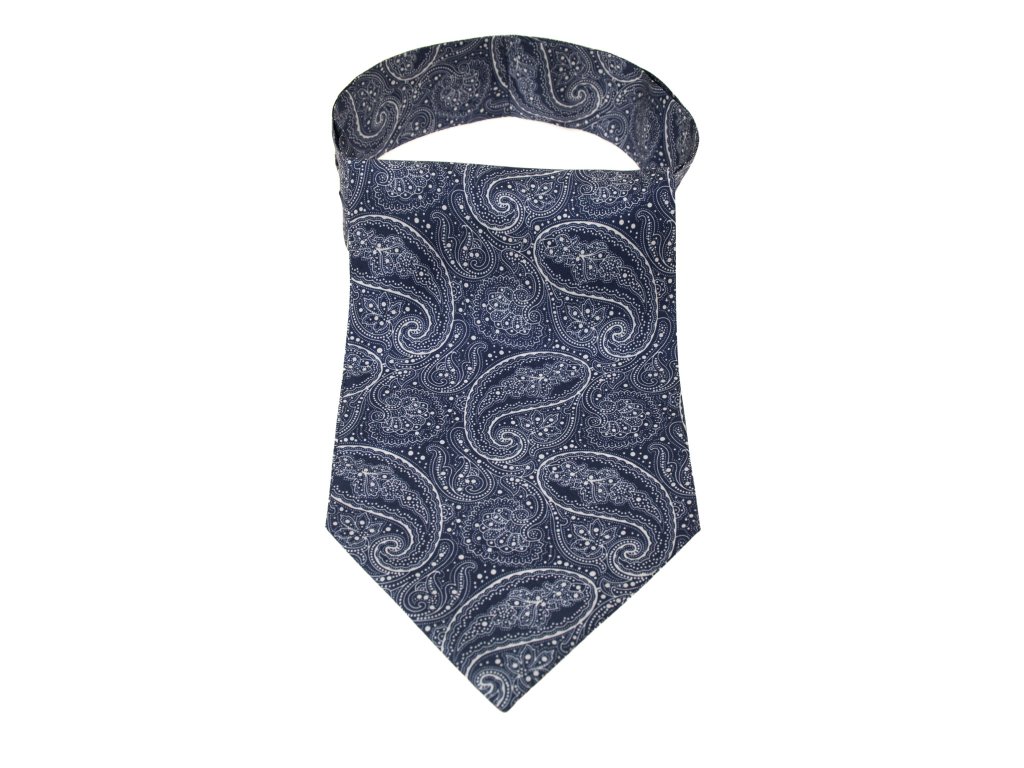 Tmavě modrý hedvábný askot se vzorem Paisley