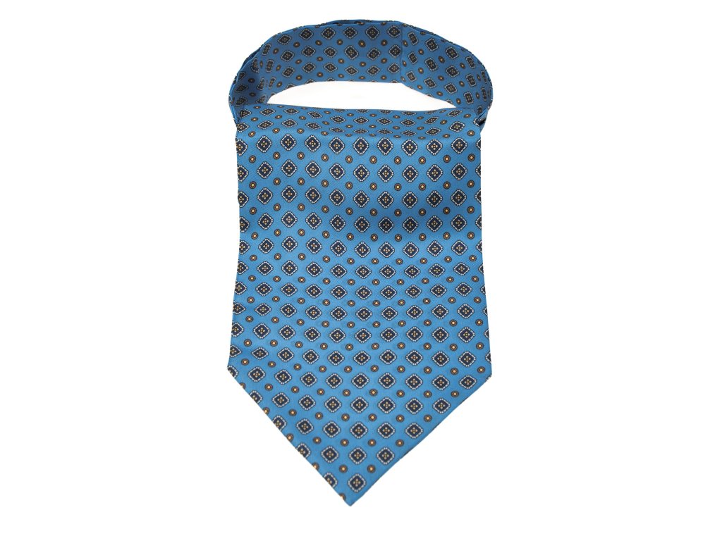 Tyrkysový hedvábný pánský askot se vzorem je pánský šátek, kterým můžete ozvláštnit svůj šatník a občas nahradit kravaty nebo motýlky.