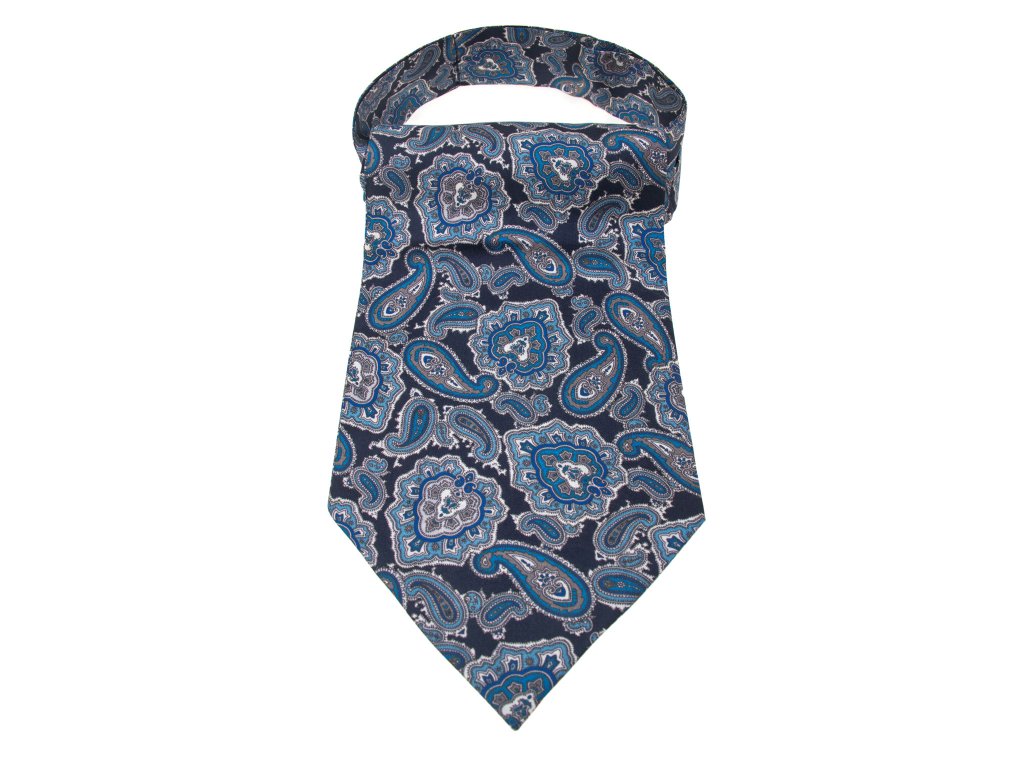 Velmi tmavě modrý hedvábný askot se vzorem Paisley