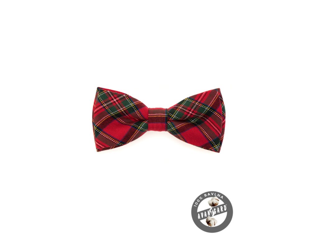 Červený bavlněný károvaný pánský motýlek (12,5 cm)
