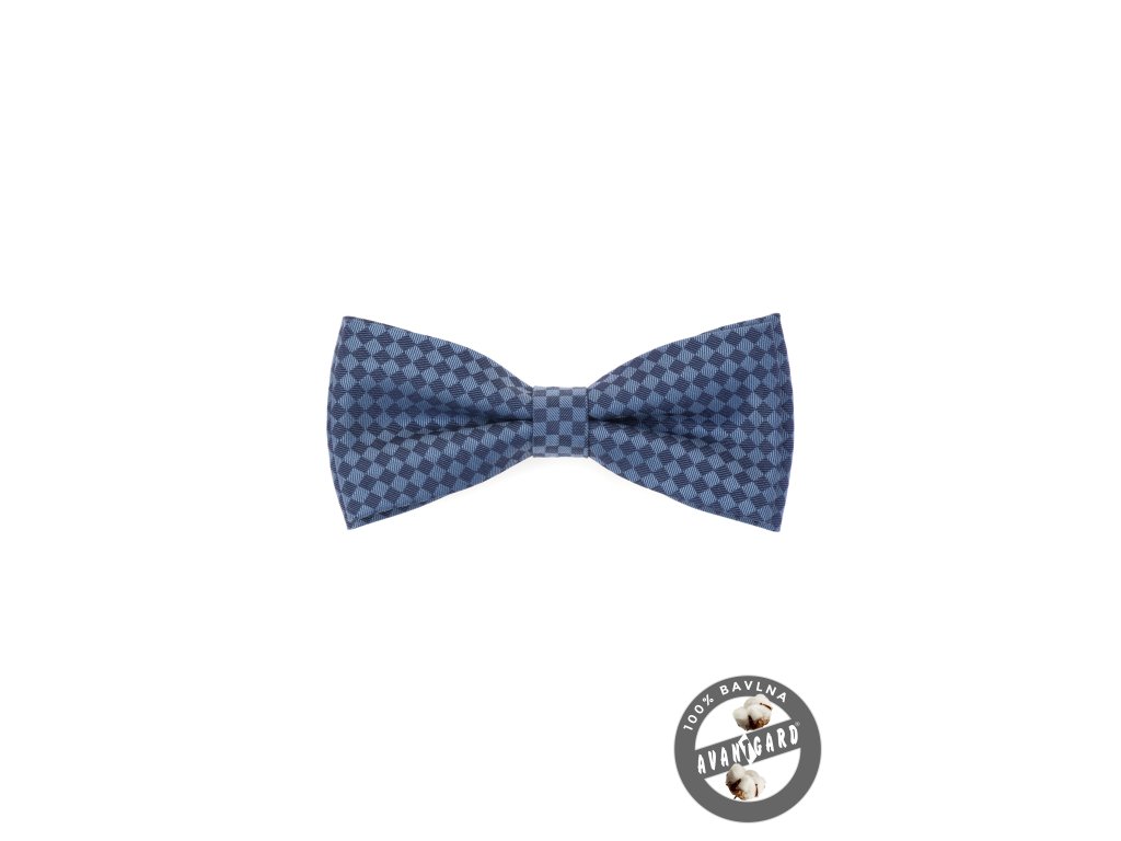 Modrý bavlněný pánský motýlek se šachovnicí (12,5 cm)