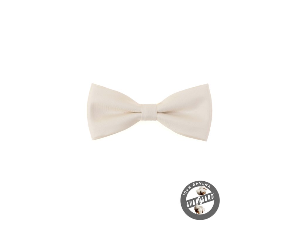 Smetanový jednobarevný bavlněný pánský motýlek je předvázaný a ke krku jej uchytíte pomocí pásku, jehož délku je možné regulovat.