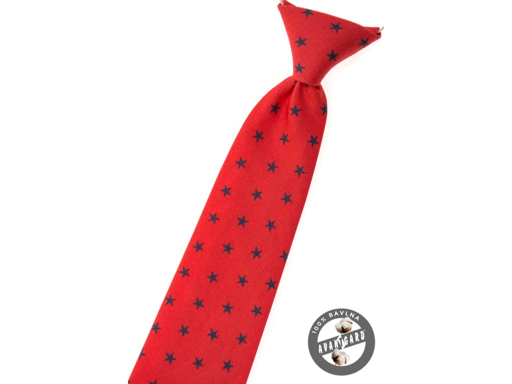 Červená chlapecká kravata s hvězdičkami je vyrobena ze 100% bavlny a je 31 cm dlouhá.