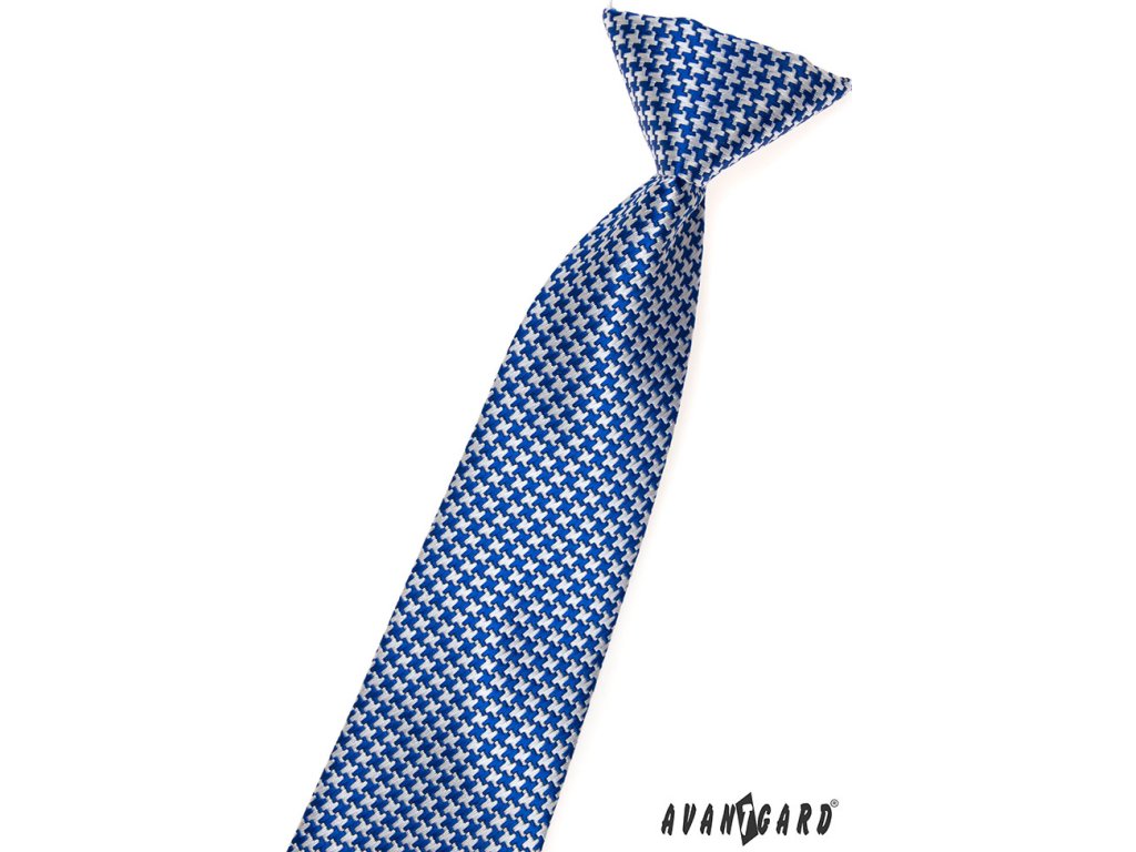 Modrá chlapecká kravata s bílým křížkovým vzorem