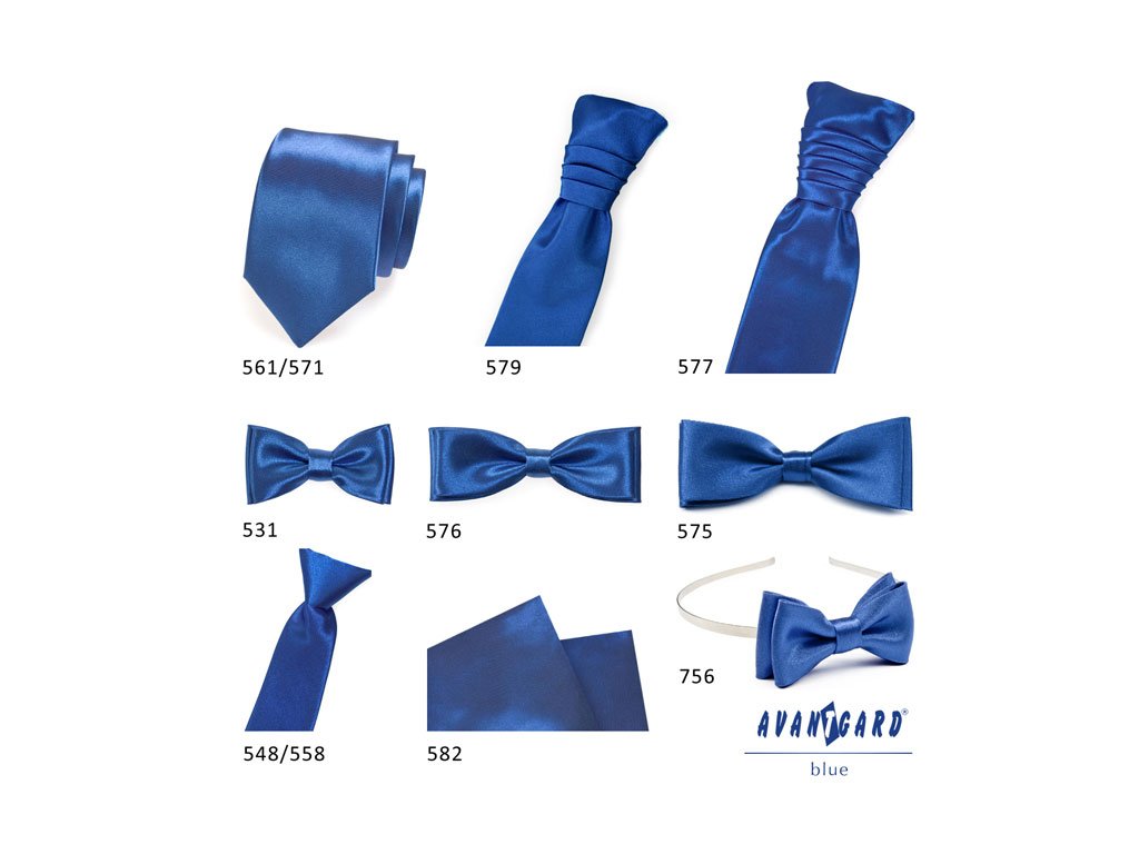 Modrá lesklá dětská kravata je český produkt značky Avantgard.