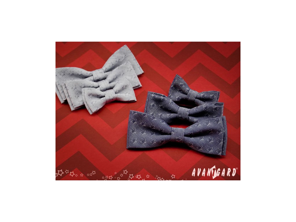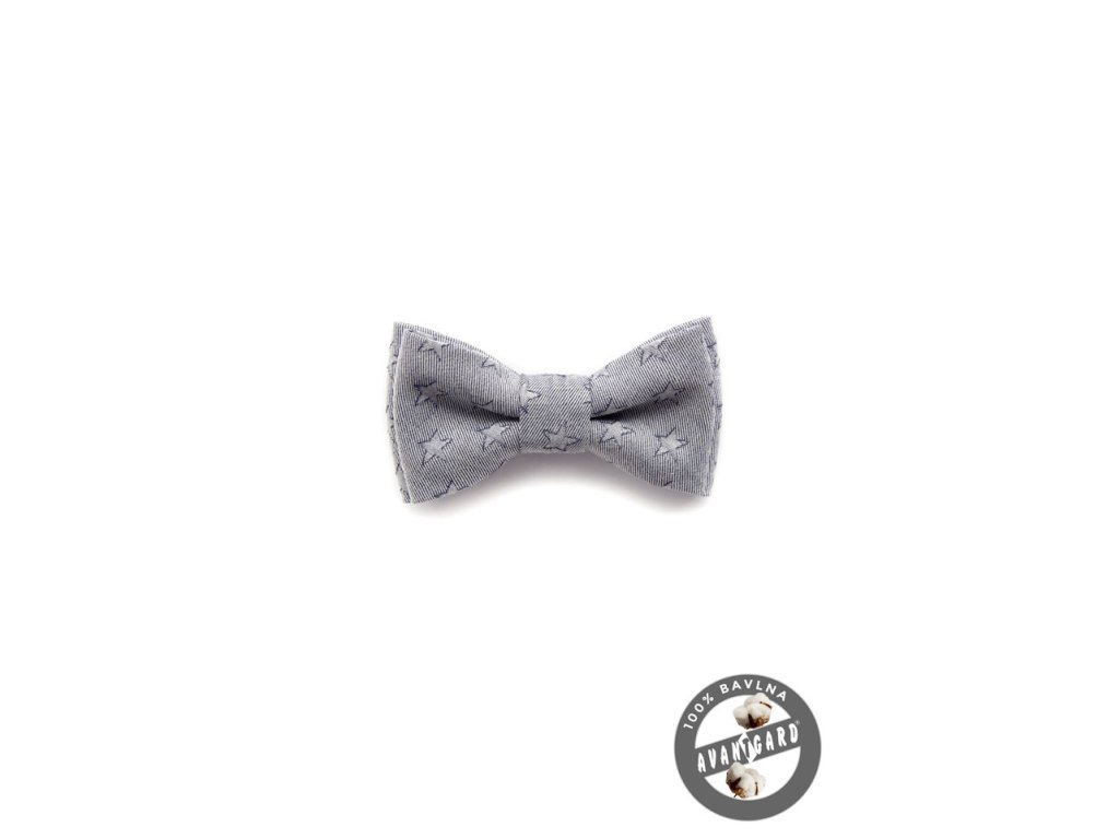 Světle šedý chlapecký MINI motýlek se vzorem hvězdy