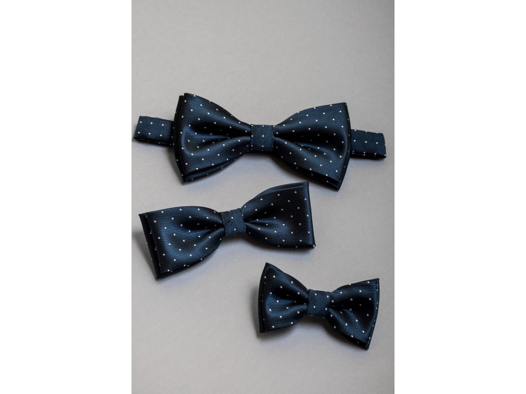 Velmi tmavě modrý dětský motýlek s bílými tečkami