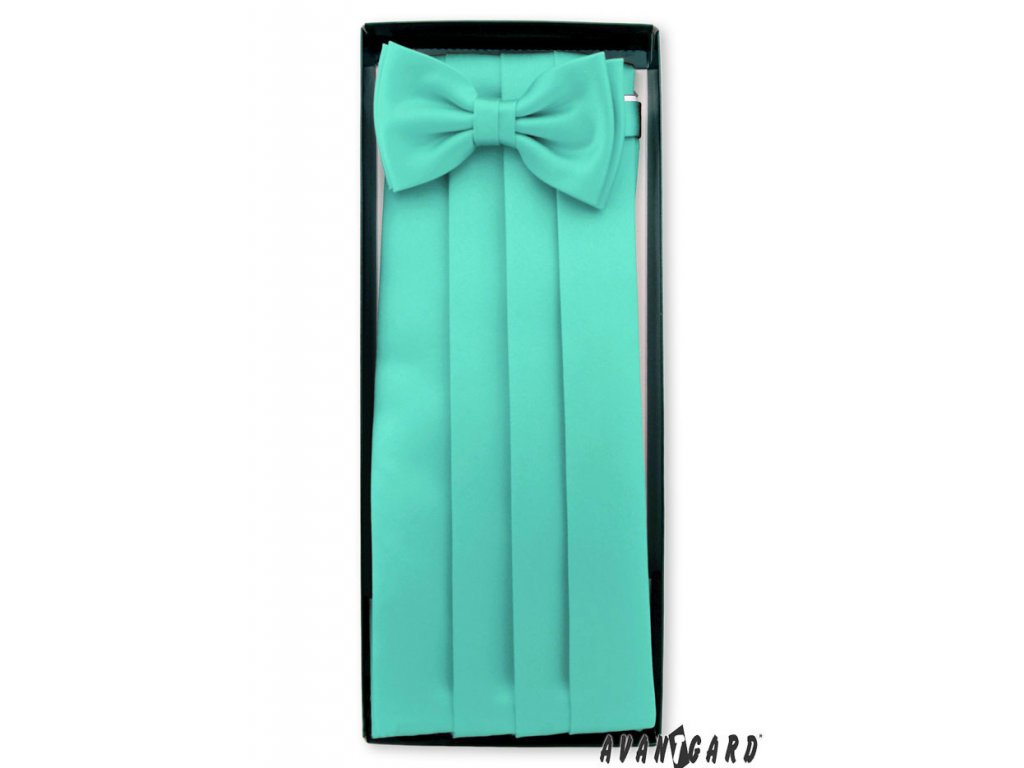 › Doplňky › Mátový frakový pás s motýlkem a kapesníčkem_