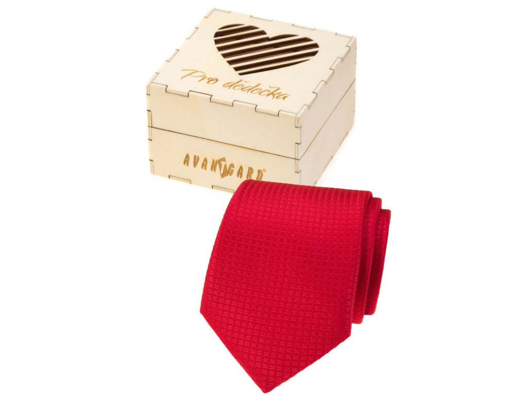 Červená pánská kravata v dřevěné dárkové krabičce – Pro dědečka