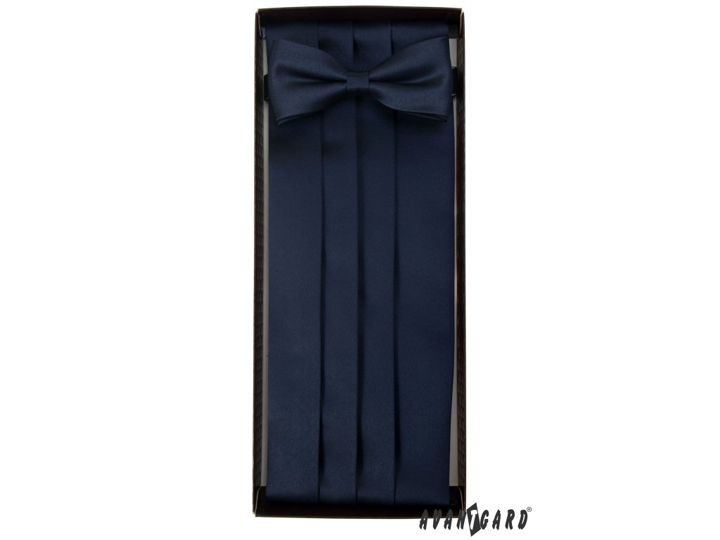Tmavě modrý frakový pás + motýlek + kapesníček