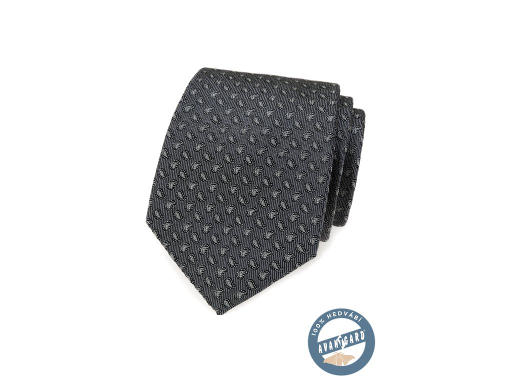 Šedá pánská hedvábná kravata se vzorem + krabička