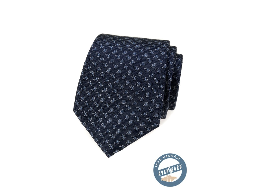 Velmi tmavě modrá hedvábná kravata se světlým vzorem + krabička