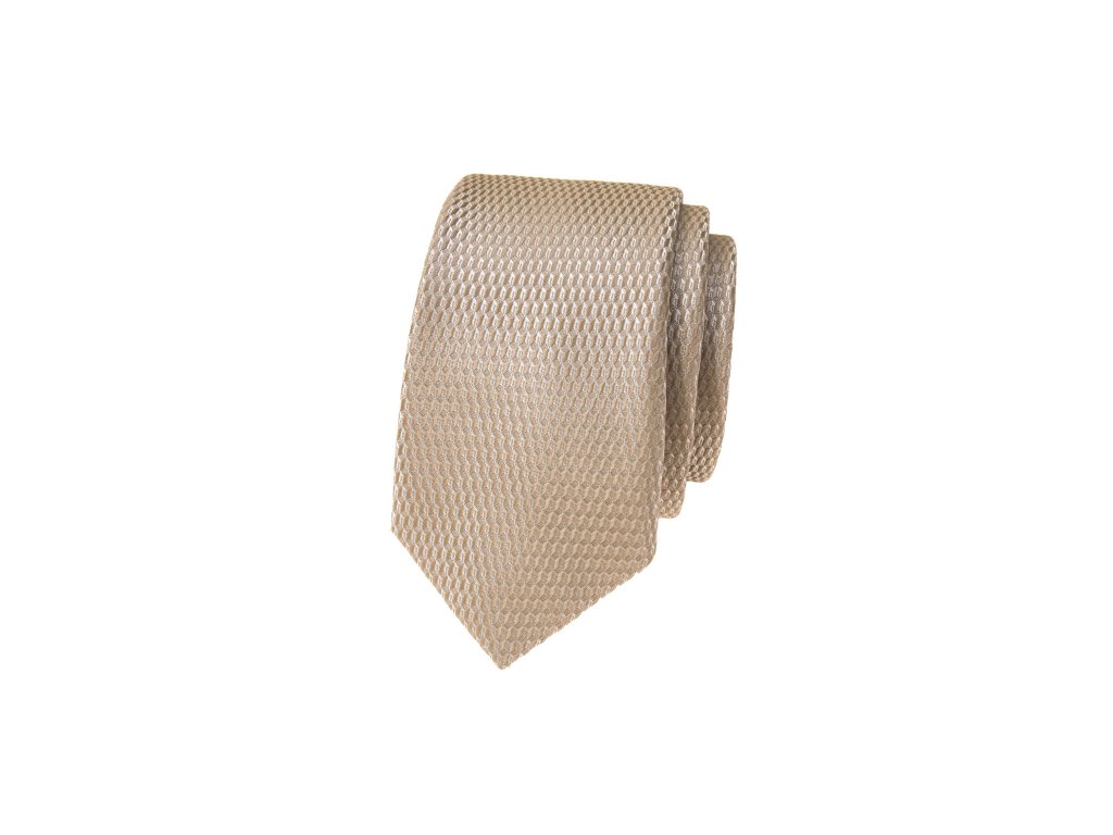 Béžová lesklá luxusní pánská slim kravata