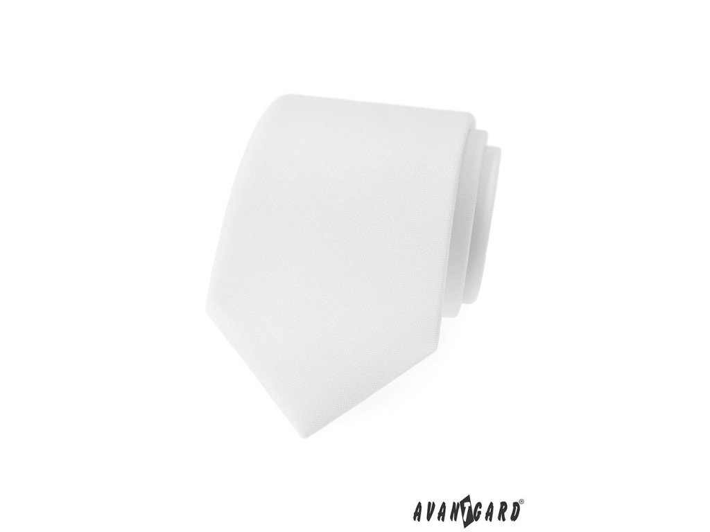 Bílá jednobarevná luxusní kravata je 7 cm široká.