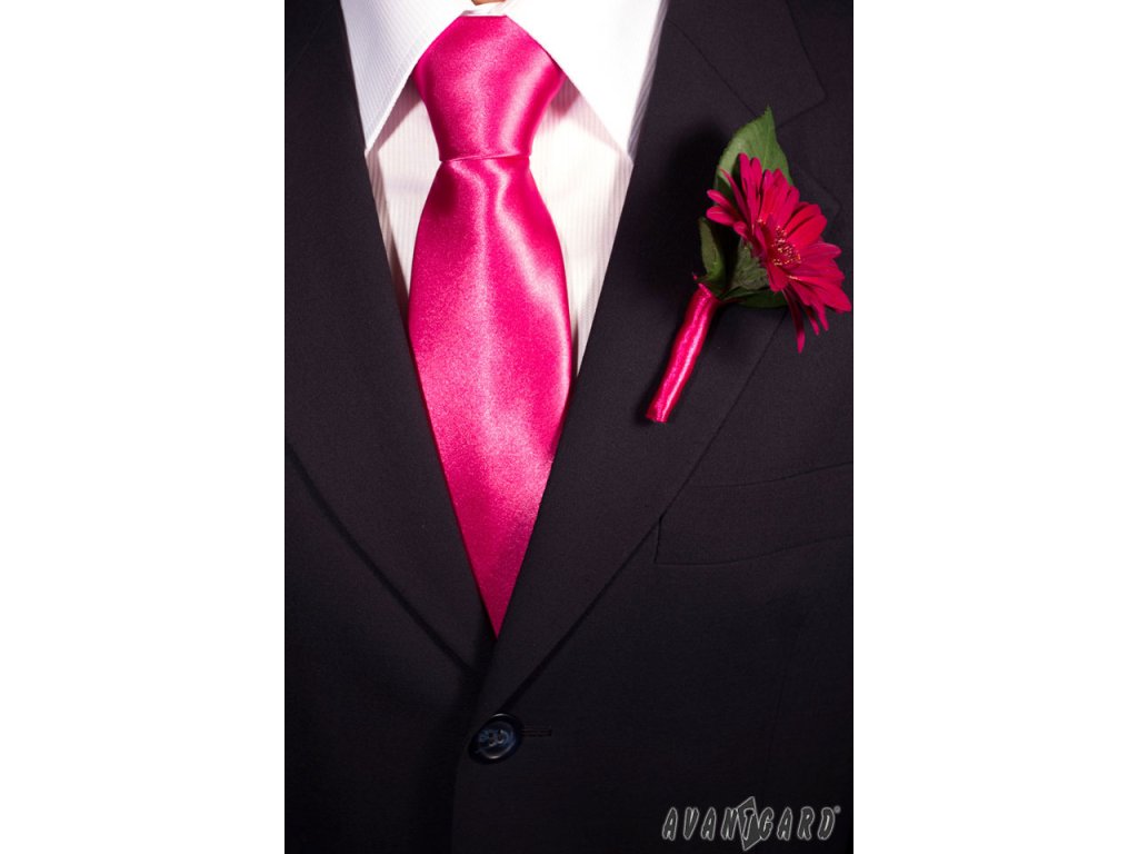 Fuchsiová kravata je 7 cm široká a je vyrobena ze 100% polyesteru.