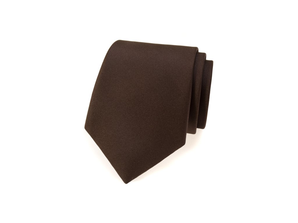 Hnědá matná jednobarevná kravata je výrobek české značky Avantgard.