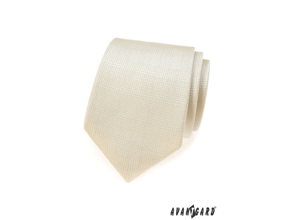 Smetanová kravata s jemnou vroubkovanou strukturou je výrobek české značky Avantgard.