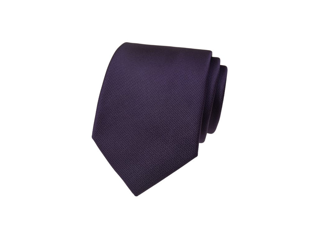 Tmavě fialová luxusní pánská kravata s proužkovanou strukturou je 8 cm široká a je vyrobena ze 100% polyesteru.