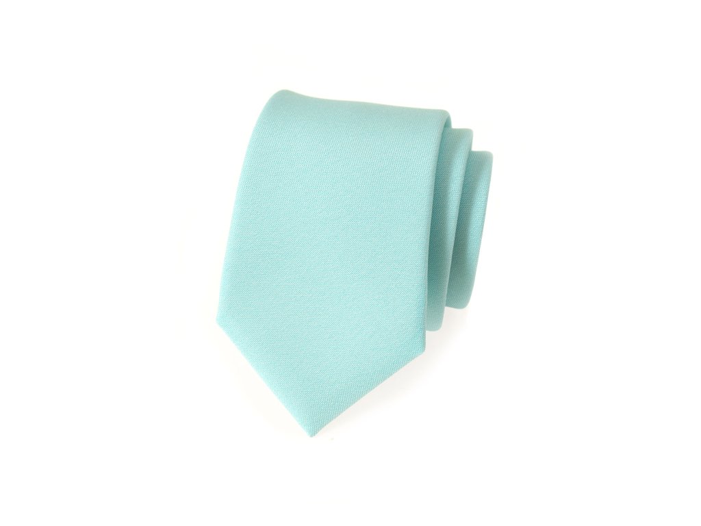 Velmi světle mátová kravata s hladkým povrchem je výrobek české značky Avantgard.
