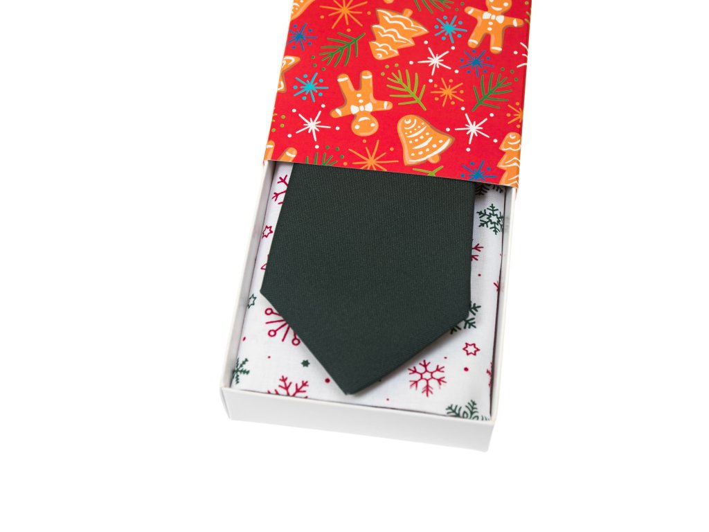 Zelená matná luxusní pánská kravata + kapesníček do saka (vánoční dárková sada)