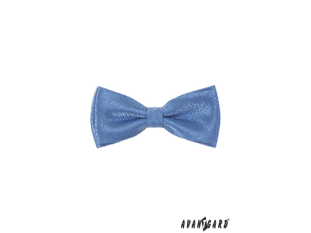 Modrý pánský motýlek s popraskaným efektem je předvázaný. Elegantní pánský doplněk nemusíte složitě vázat.