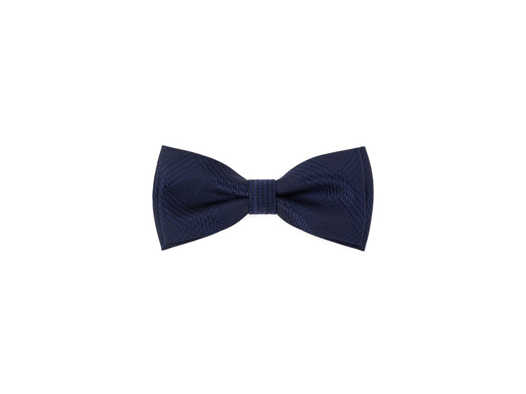Tmavě modrý pánský motýlek s vroubkovanou strukturou je předvázaný a ke krku jej uchytíte pomocí pásku, jehož délku je možné regulovat.