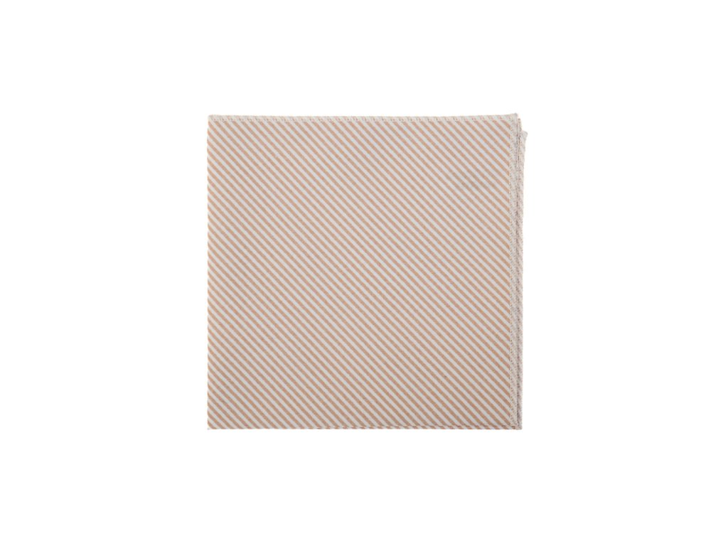 Béžový bavlněný luxusní kapesníček do saka s pruhy je vyroben ze 100% bavlny a jeho rozměry jsou 24x24 cm.