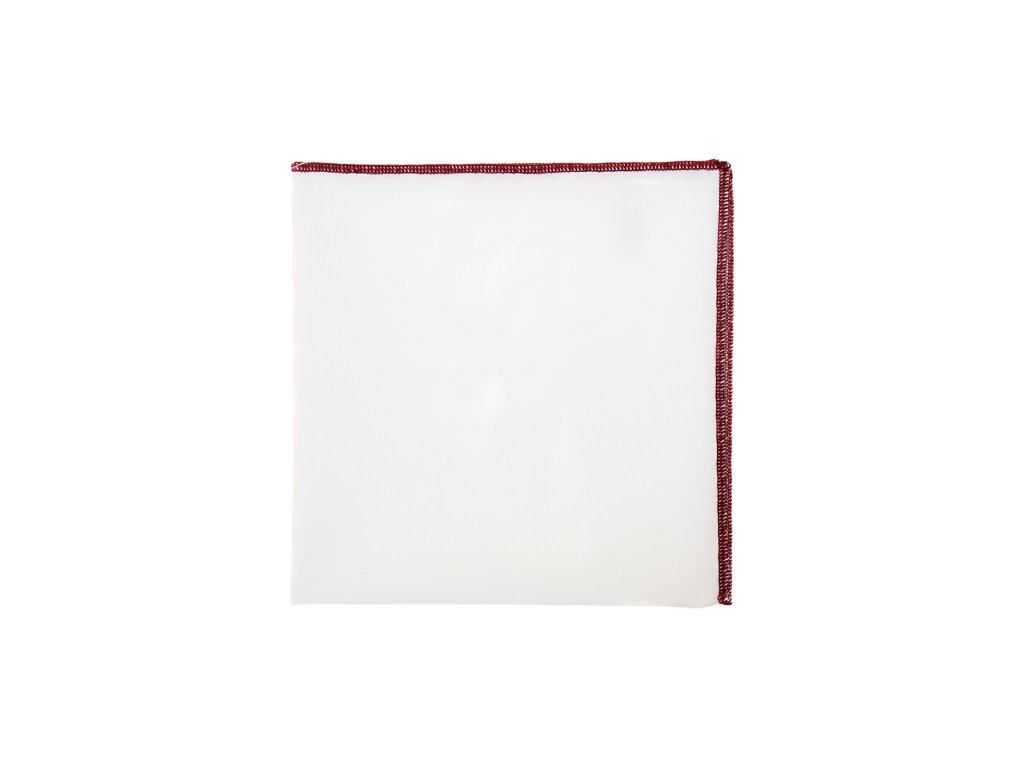Bílý bavlněný luxusní kapesníček do saka s vínovým okrajem je vyroben ze 100% bavlny a jeho rozměry jsou 28x28 cm.