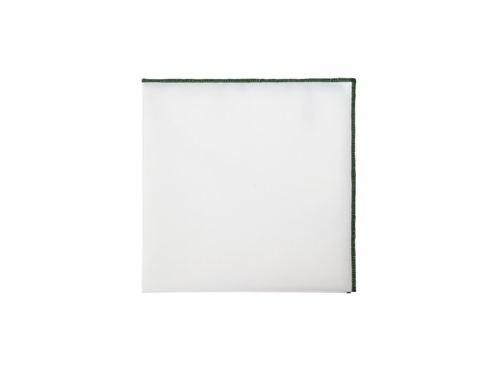 Bílý bavlněný luxusní kapesníček do saka se zeleným okrajem je vyroben ze 100% bavlny a jeho rozměry jsou 28x28 cm.