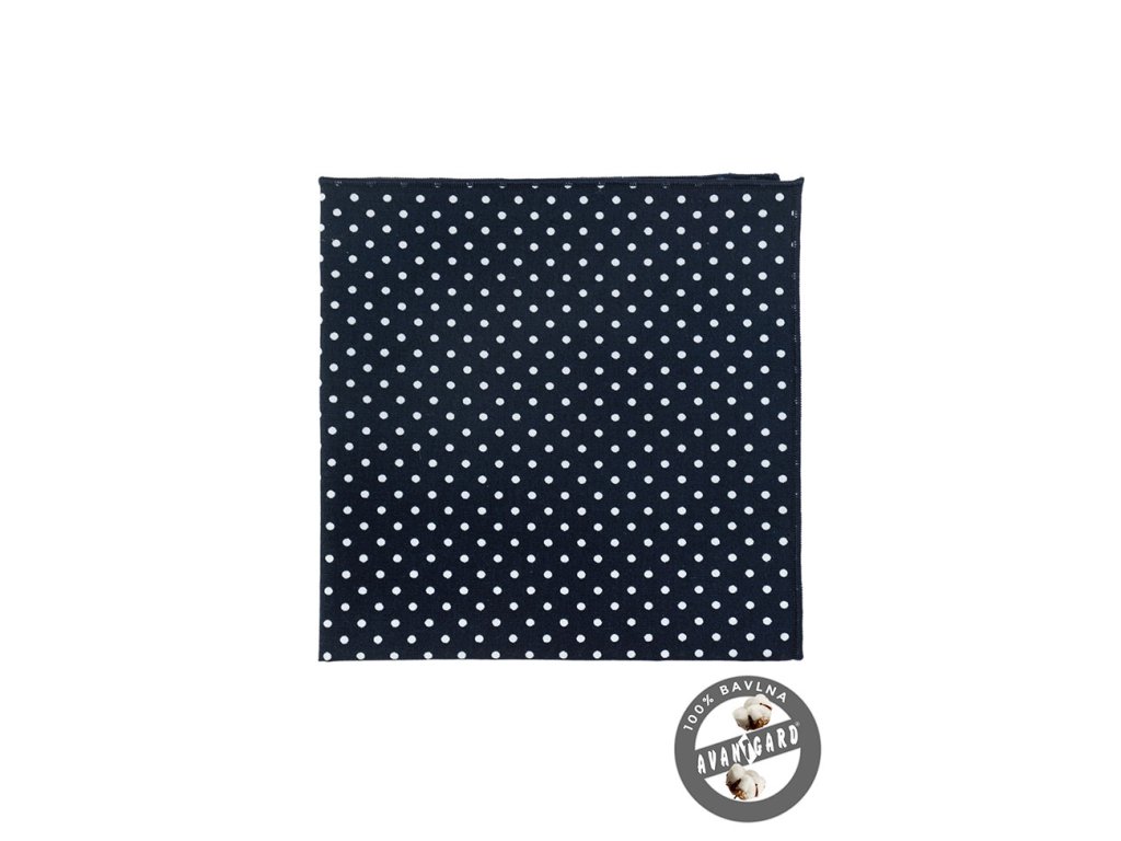 Velmi tmavě modrý kapesníček s bílými puntíčky je výrobek české značky Avantgard.
