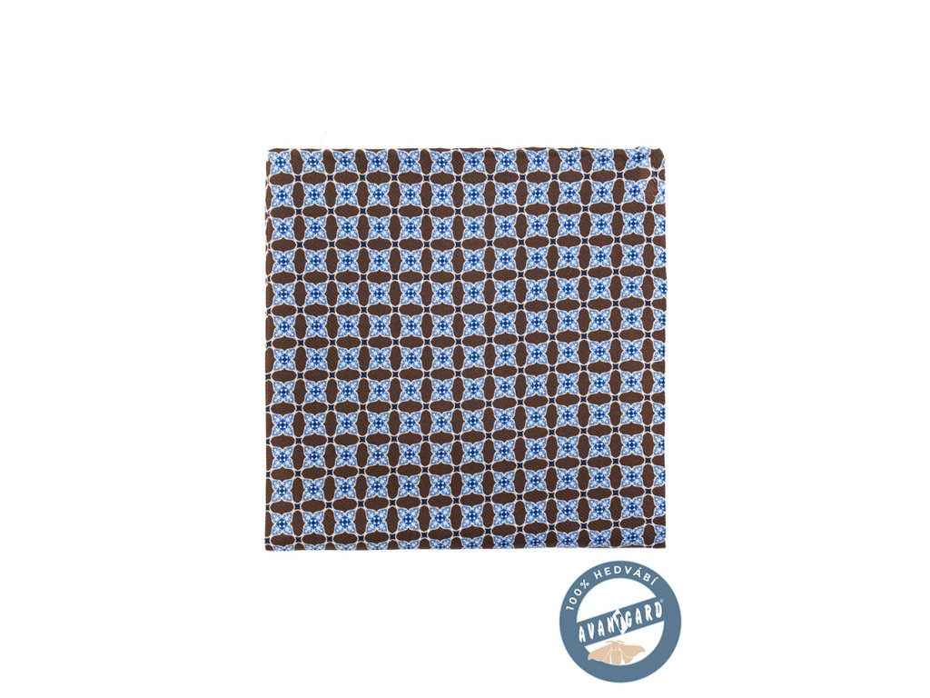 Hnědý hedvábný kapesníček s modrým vzorem je výrobek české značky Avantgard.