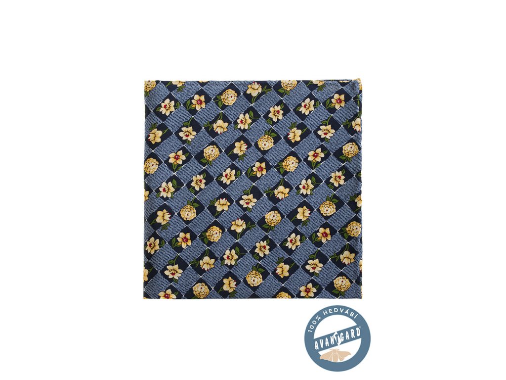 Modrý kapesníček s šachovnicí a květy je výrobek české značky Avantgard.