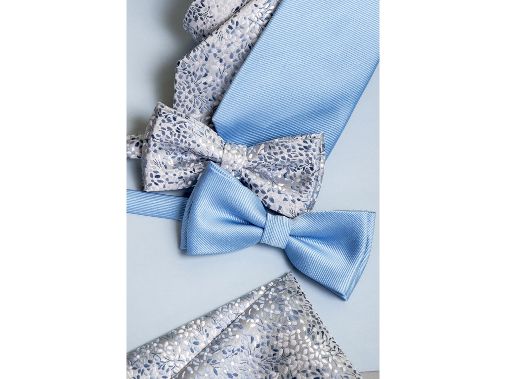 Světle modrý luxusní kapesníček do saka s drobnými květy je vyroben ze 100% polyesteru a jeho rozměry jsou 28x28 cm.