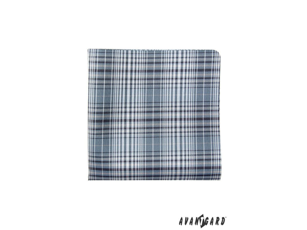 Světle šedý károvaný kapesníček je výrobek české značky Avantgard.