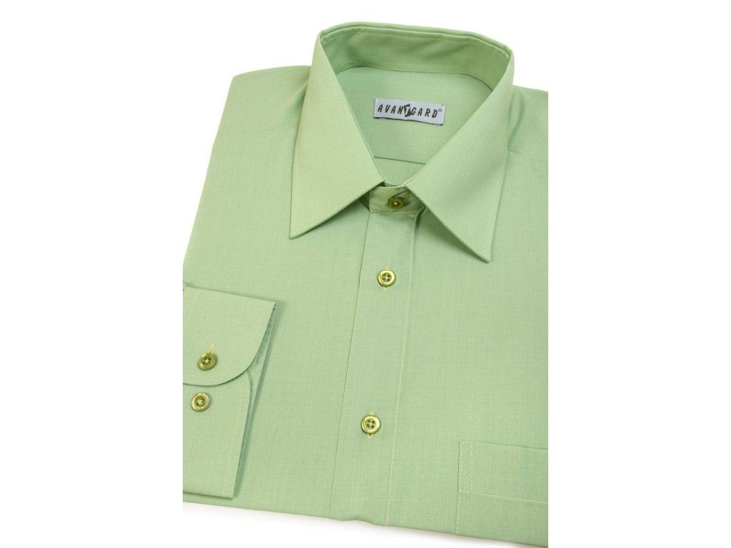 Pánská zelená košile má dlouhý rukáv, klasický střih, klasický límec a je vyrobena z prodyšného a velmi příjemného materiálu. Jedná se o český výrobek značky Avantgard.