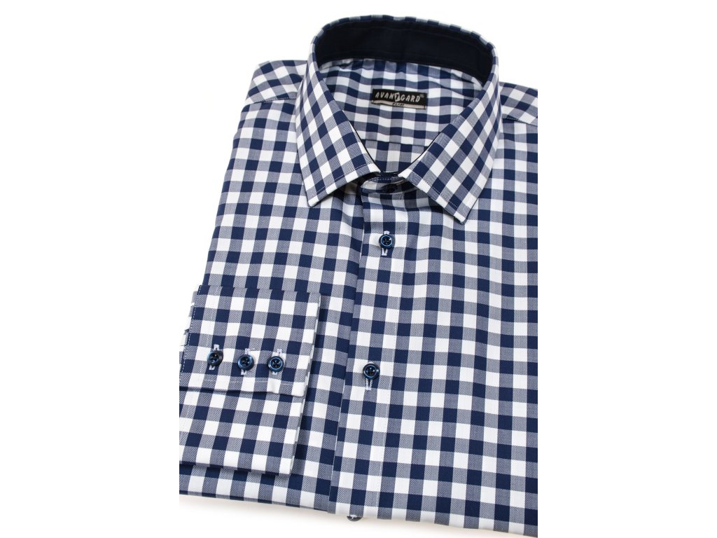 Modrá kostkovaná pánská SLIM FIT košile, dl. rukáv, 109-8888