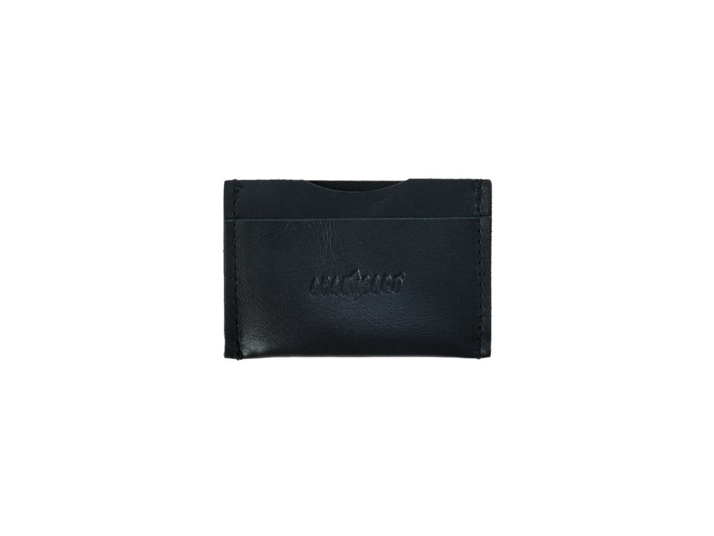 Velmi tmavě modré pouzdro s tmavou nití slouží k uschování karet, vizitek a dalších drobností.