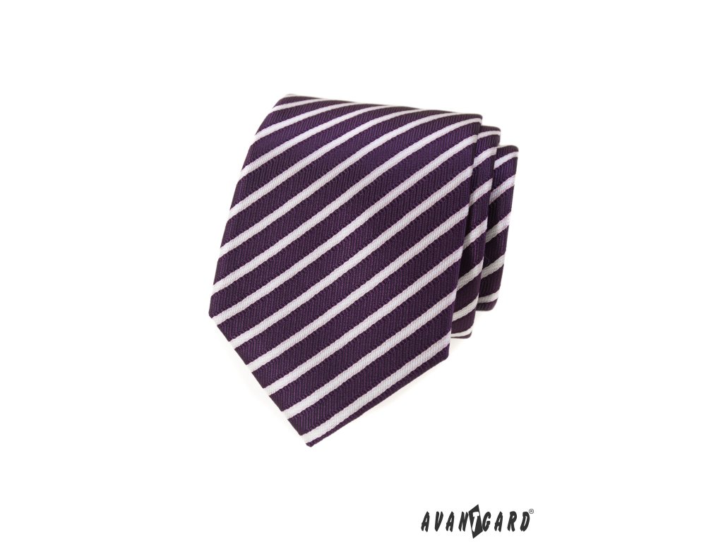 Fialová luxusní pánská kravata s pruhy je 7 cm široká a je vyrobena ze 100% polyesteru.