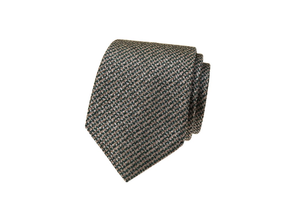 Béžová luxusní pánská kravata se zeleným vzorkem