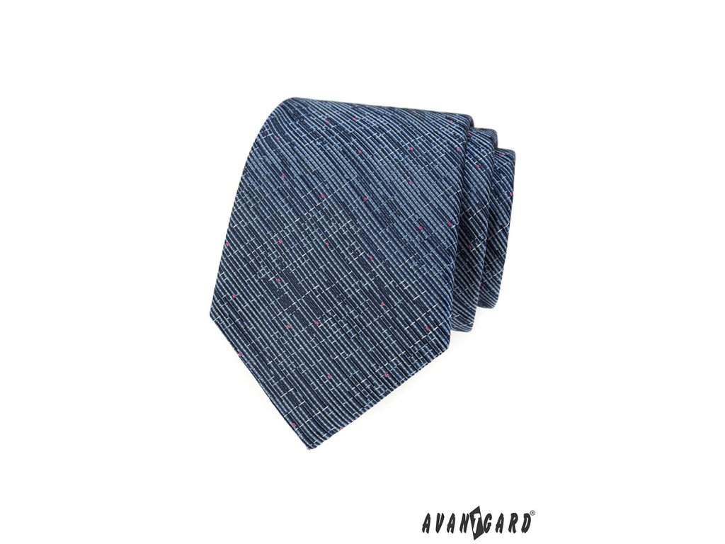 Modrá kravata se žíhaným vzorem je výrobek české značky Avantgard.