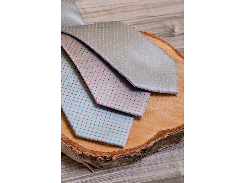 Světle šedá luxusní pánská kravata s bílými tečkami