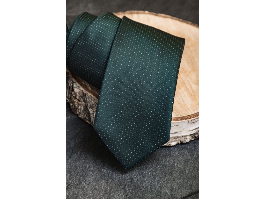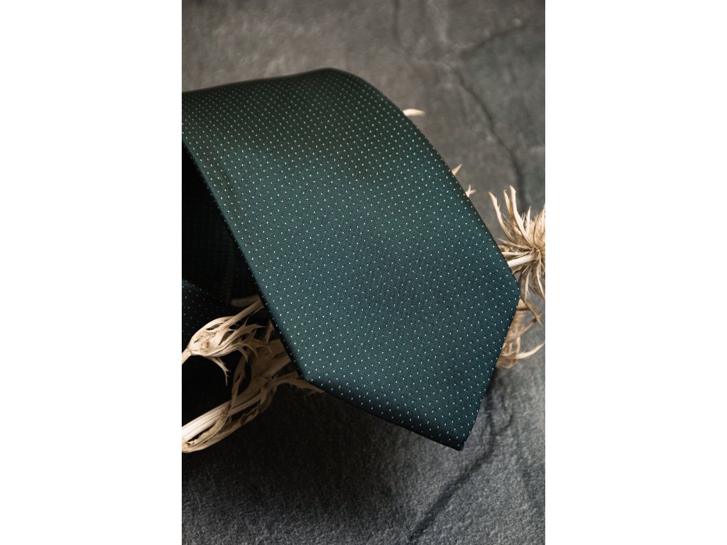 Velmi tmavě zelená luxusní pánská kravata s drobnými tečkami je 7 cm široká a je vyrobena ze 100% polyesteru.