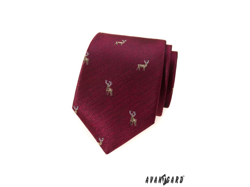 Vínová luxusní pánská kravata se vzorem – Jelen
