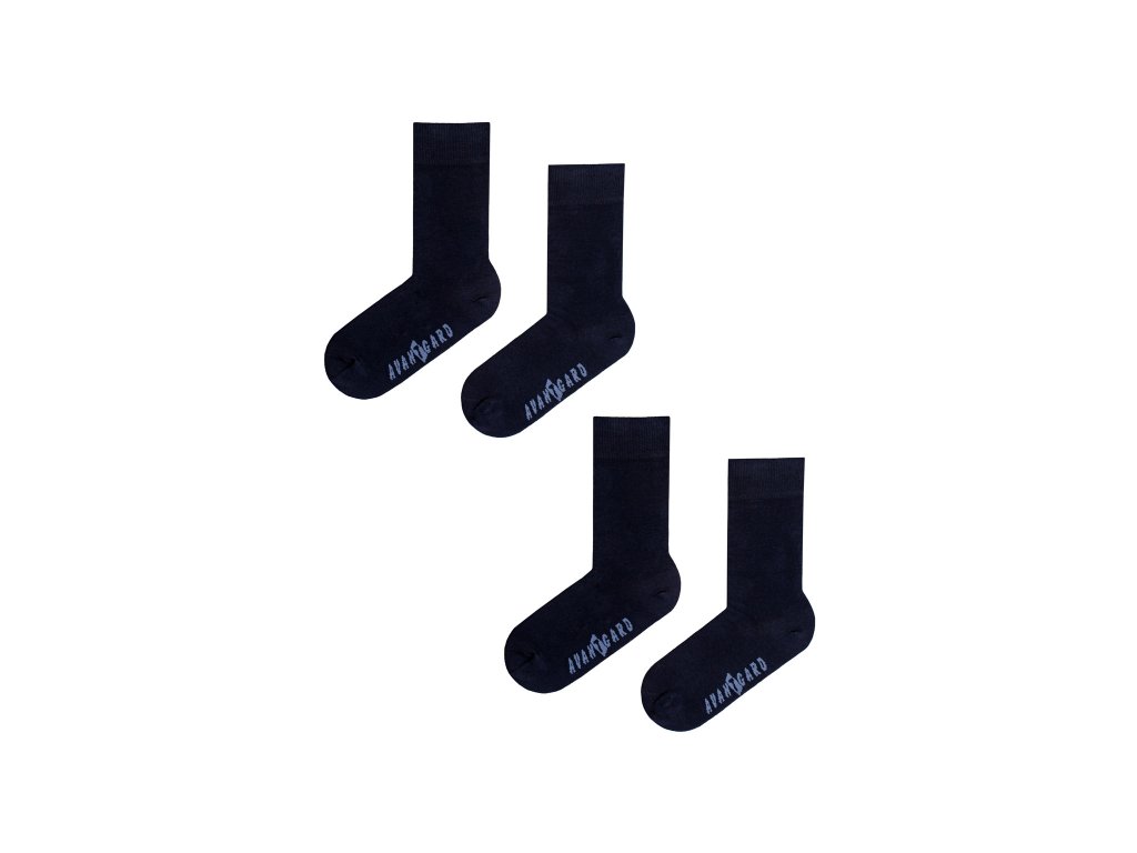 Tmavě modrá sada kvalitních pánských ponožek obsahuje 2 páry modrých ponožek.