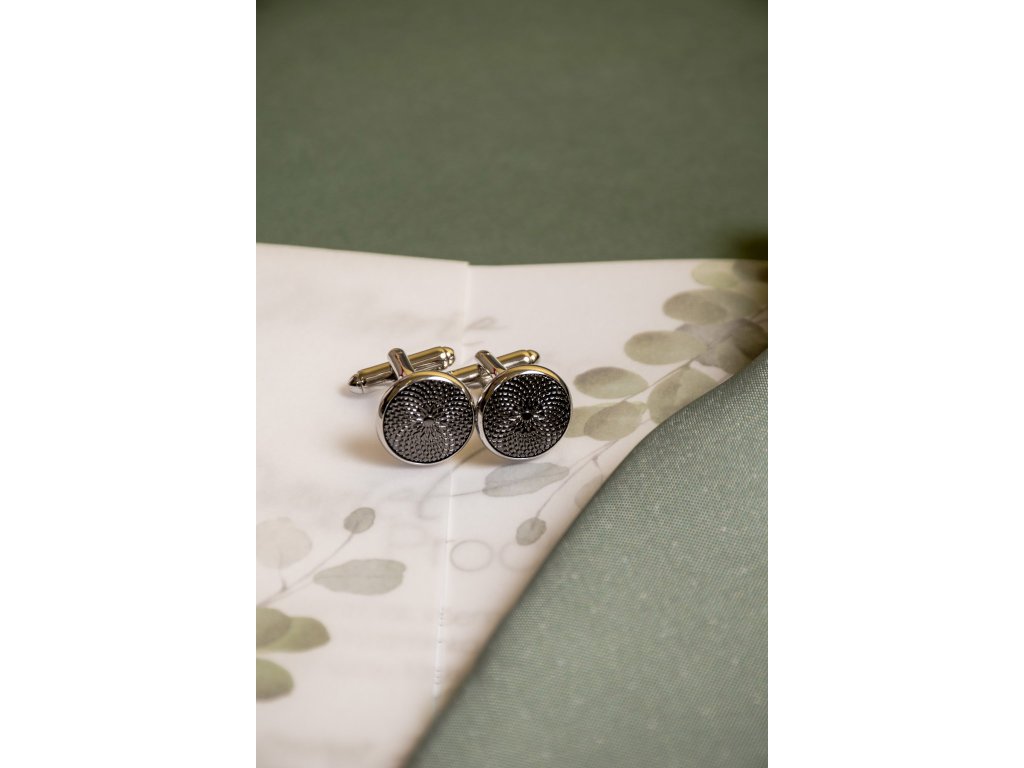 Grafitové kulaté manžetové knoflíčky mají průměr 16 mm.