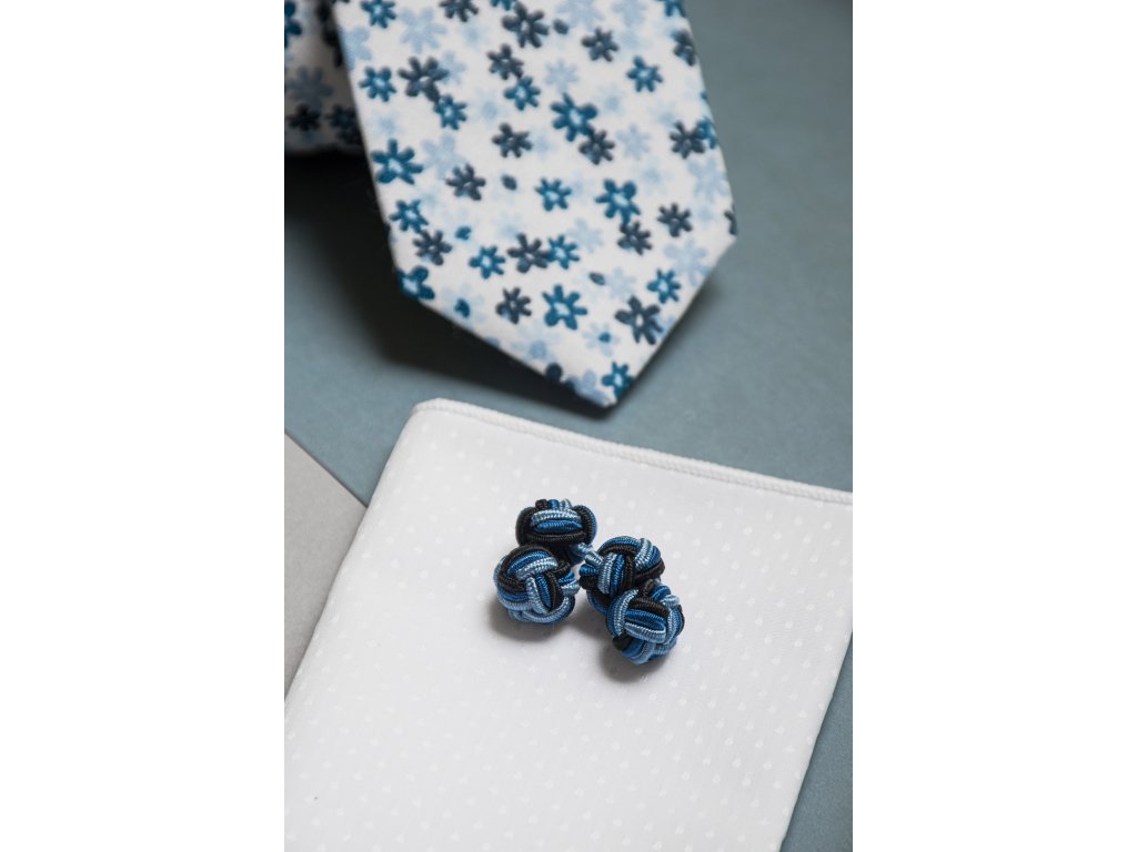 Modré manžetové uzlíky s tmavým detailem jsou výrobek české značky Avantgard.