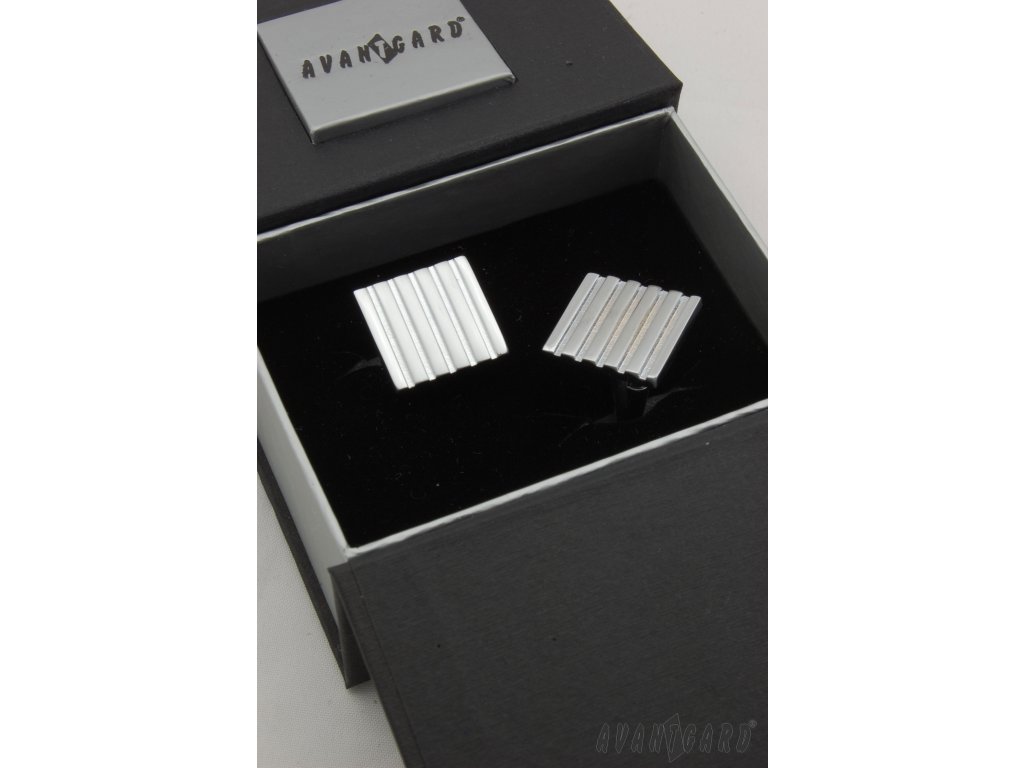 Stříbrné manžetové knoflíčky s jemnými rýhami jsou výrobek české značky Avantgard.